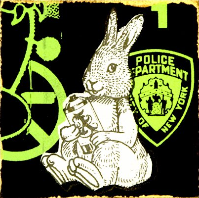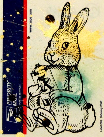 BUNNYButtonType: Screen Print & Acrylic on Sticker Edition: 30 Dimensions: 5.25" X 4" Release Date: 2006