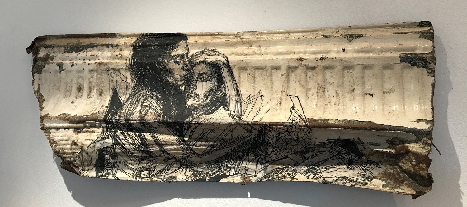 ButtonType: Linoleum Print on Paper & Wood Board with Hand Embellishments