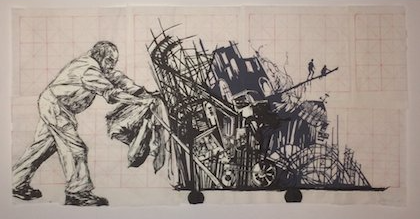 STREET SWEEPERButtonType: Screen Print on 8 Pieces of Paper Sewn Together Edition: Unique Dimensions: 10" X 20" Release Date: 2008