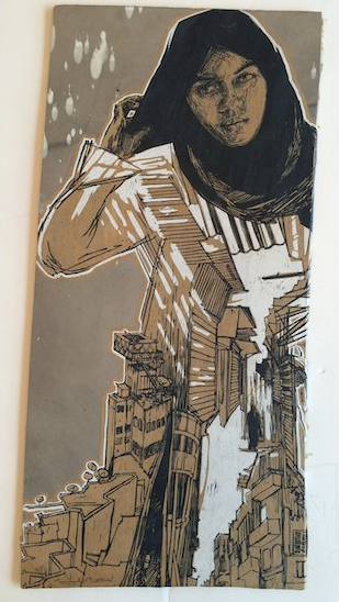 ZAHRA 07ButtonType: Screen Print on Vintage Paper Edition: Unique Dimensions: 11" X 34" Release Date: 2011
