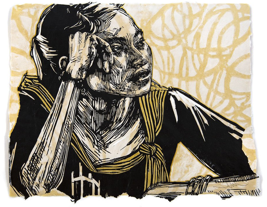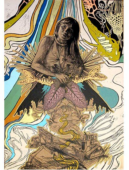KAMAYURAButtonType: Screen Print & Collage on Paper Edition: Unique Dimensions: 29" X 36" Release Date: 2014