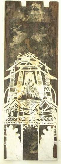 UNTITLED HOUSEButtonType: Paper Cut on Wood Board with Hand Embellishments Edition: Unique Dimensions: 12" X 30" Release Date: 2010