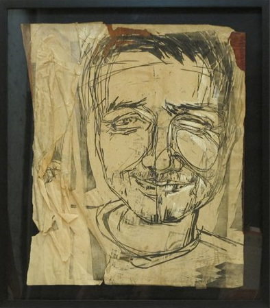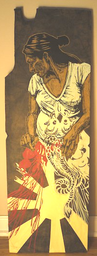 UNTITLED MANButtonType: Linoleum Print on Craft Paper on Wood Construction Fence Edition: Unique Dimensions: 40" X 60" Release Date: 2007