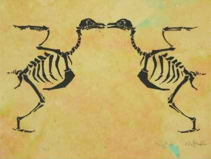 UNTITLED BIRDSButtonType: Screen Print on Vintage Paper Edition: Unique Dimensions: 10" X 10" Release Date: 2007