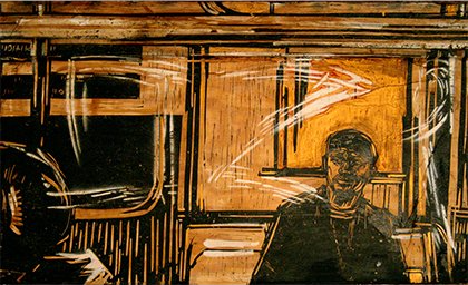 TRAIN SCENEButtonType: Block Print on Paper & Wood With Hand Embellishments Edition: Unique Dimensions: 34" X 19" Release Date: Unknown