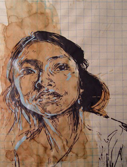 HELENAButtonType: Screen Print & Coffee Stain on Paper Edition: Varied Edition of 100 Dimensions: 8.5" X 11" Release Date: 2007